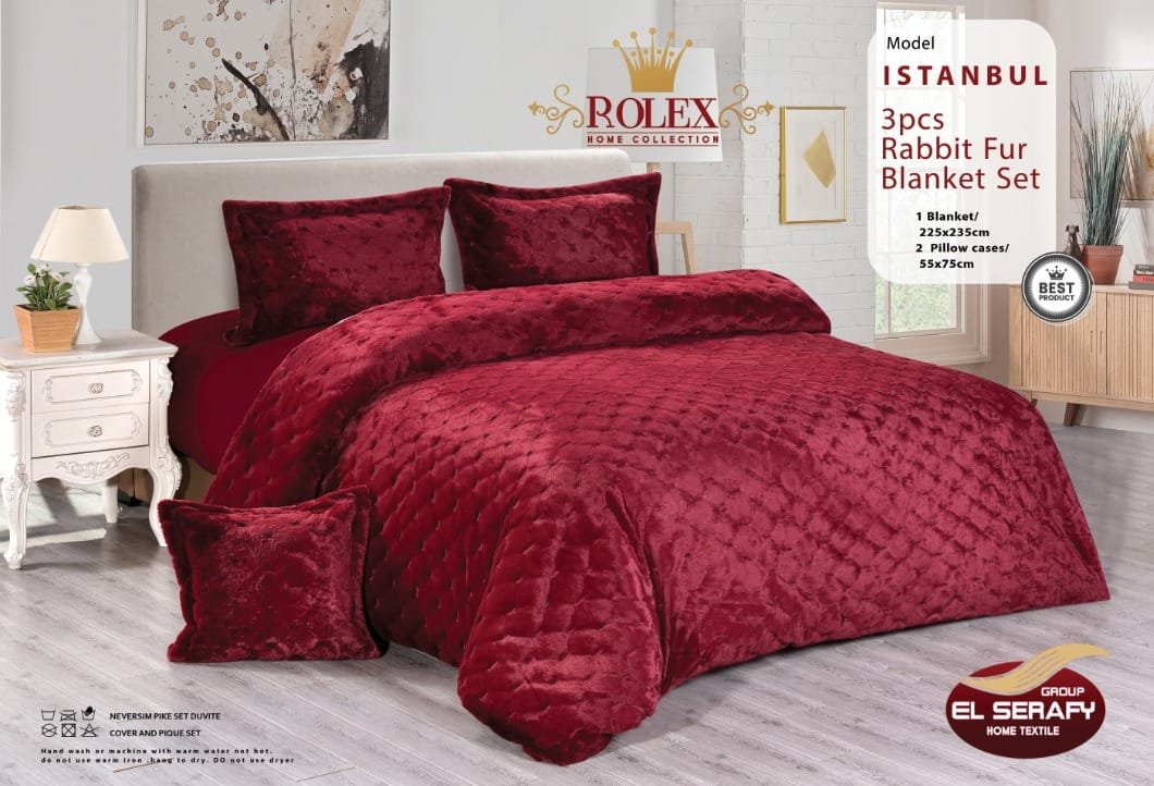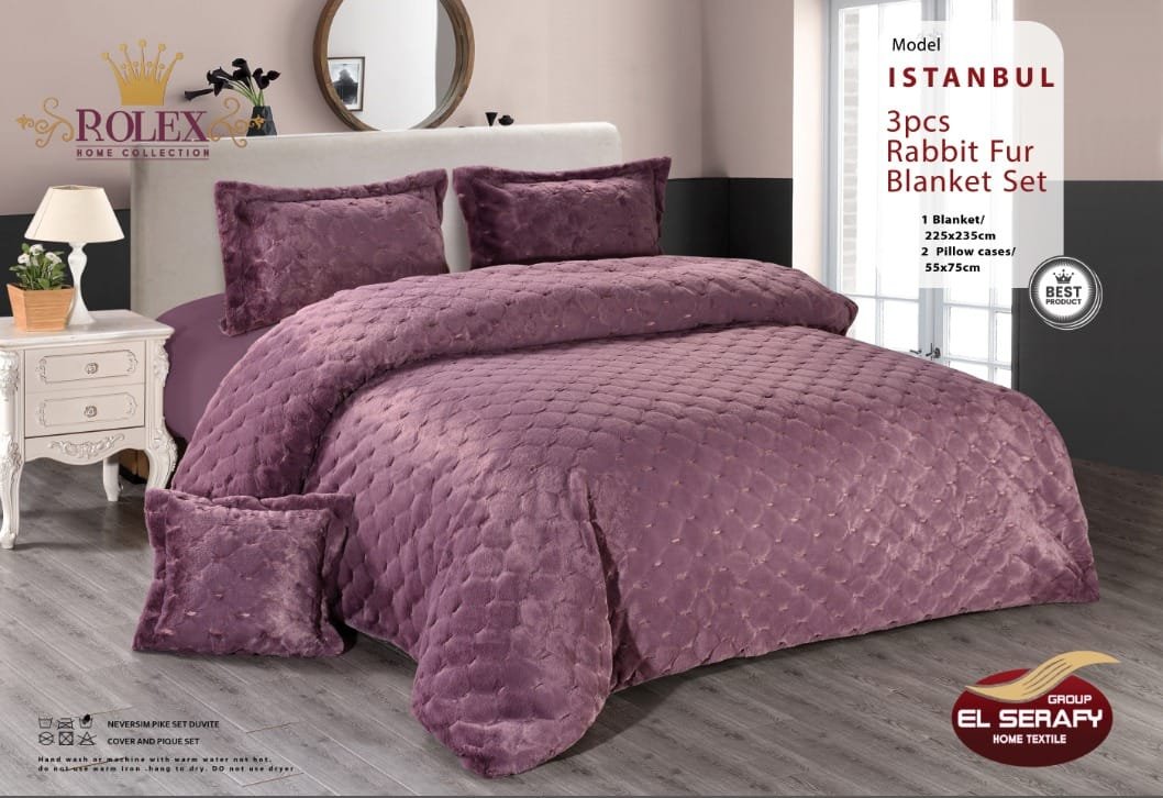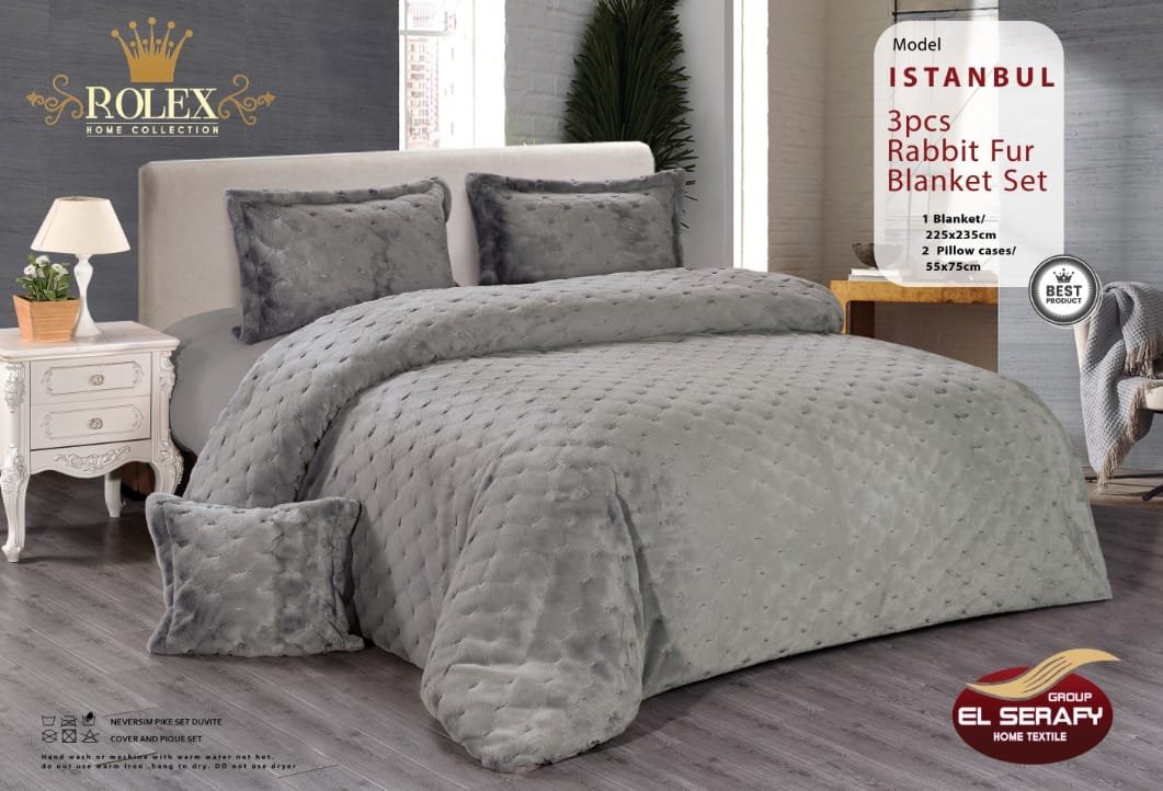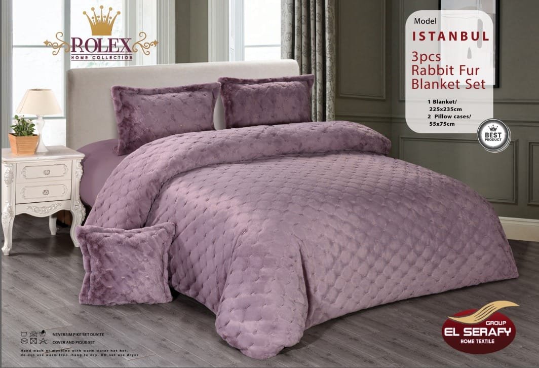 طقم لحاف “إسطنبول” من فرو الأرنب الناعم – 3 قطع من Rolex Home Collection